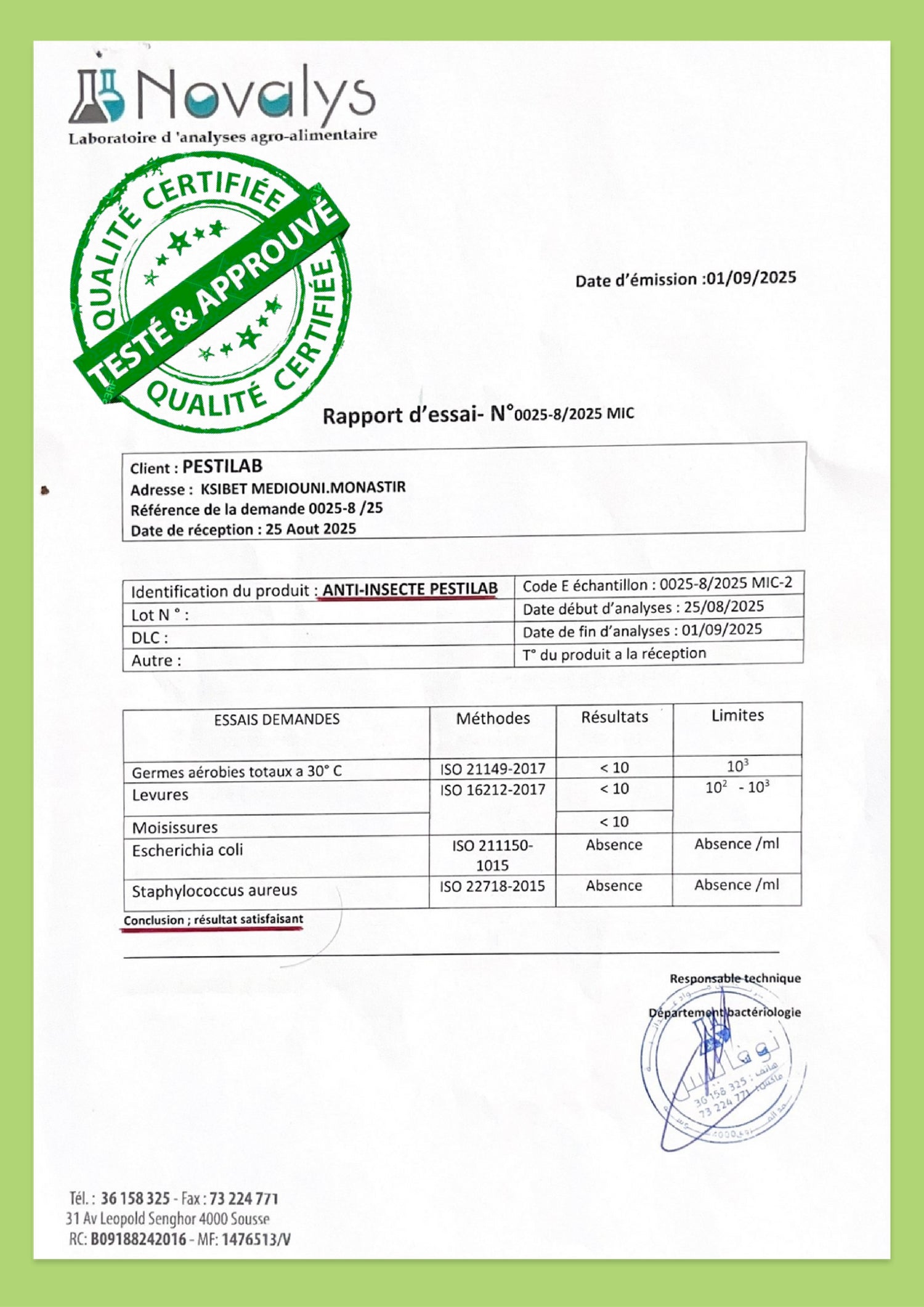 إذا كنت تعاني من آثار قرص، بقع حمراء على الجلد، حكة، وصغارك ما عادوش ينجمو يرقدو مرتاحين… اعرف إلّي راك تواجه بداية تكاثر وانتشار الحشرات المجهرية وصغيرة اللي ما عادش تأثر فيها المبيدات الكيميائية. وهذا علاش صنعنا مضاد طبيعي قوي يقضي على جميع أنواع الحشرات